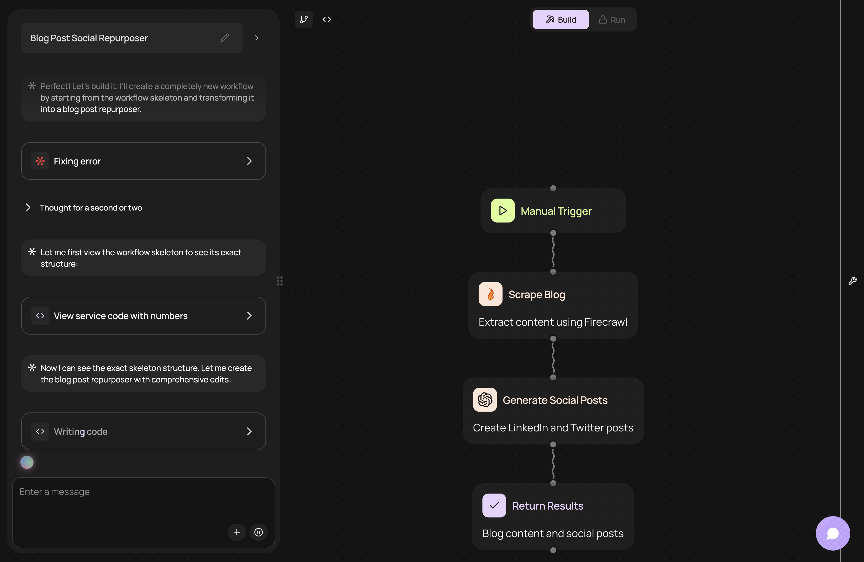 Output: A Slack message with the original article URL and perfectly formatted drafts for Twitter and LinkedIn appears in the specified channel, ready for human review and scheduling.