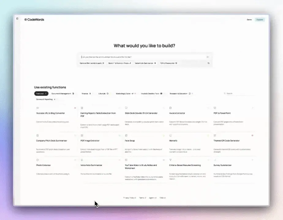 We’ve been thrilled to see our early users building tools such as an earnings report tabular data extractor into CSV tool, a research paper into PowerPoint slides converter tool or a voice transcription and Q&A tool. Try them for yourself:
