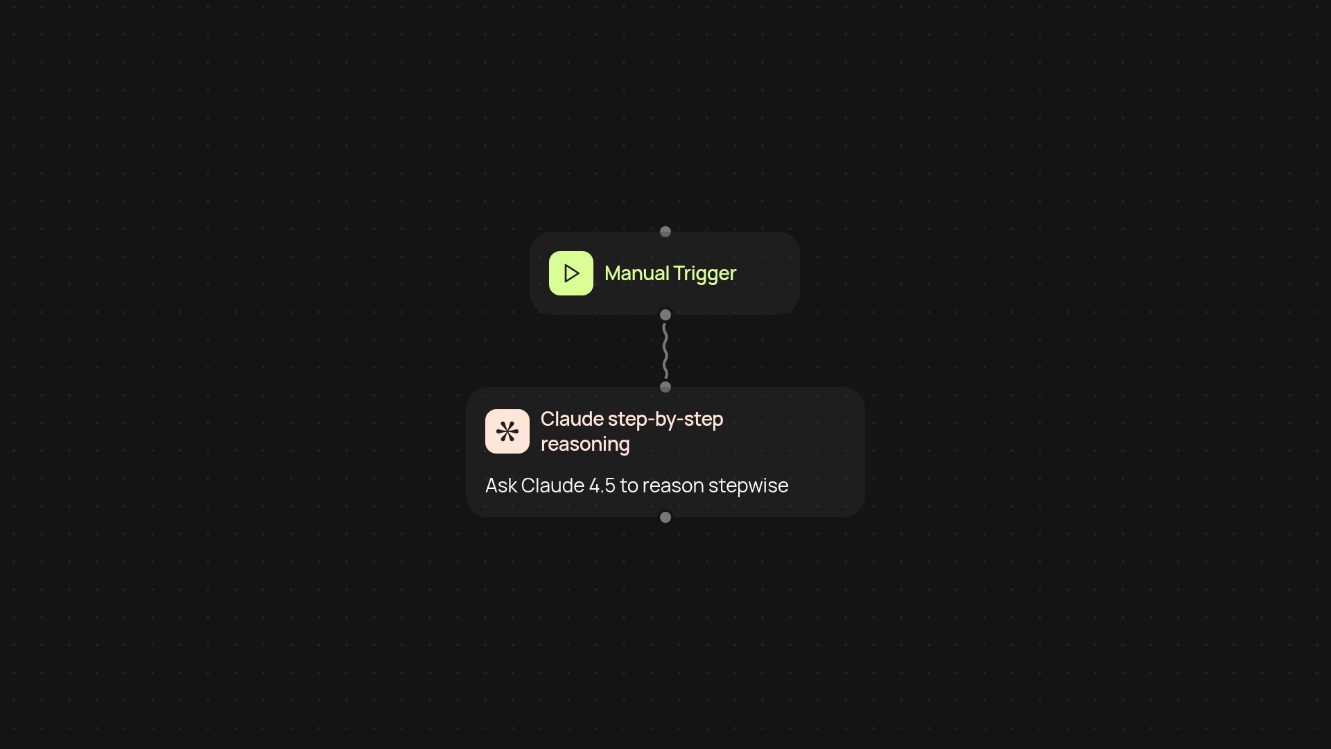 This template showcases how Claude Sonnet 4.5 walks through complex questions, delivering clear, step-by-step reasoning you can follow. Instead of black-box answers, you get transparency at every stage, so you understand exactly how Claude arrives at conclusions. Use this as a live demo or a starting point for building workflows with explainable AI support—without lifting a finger.
