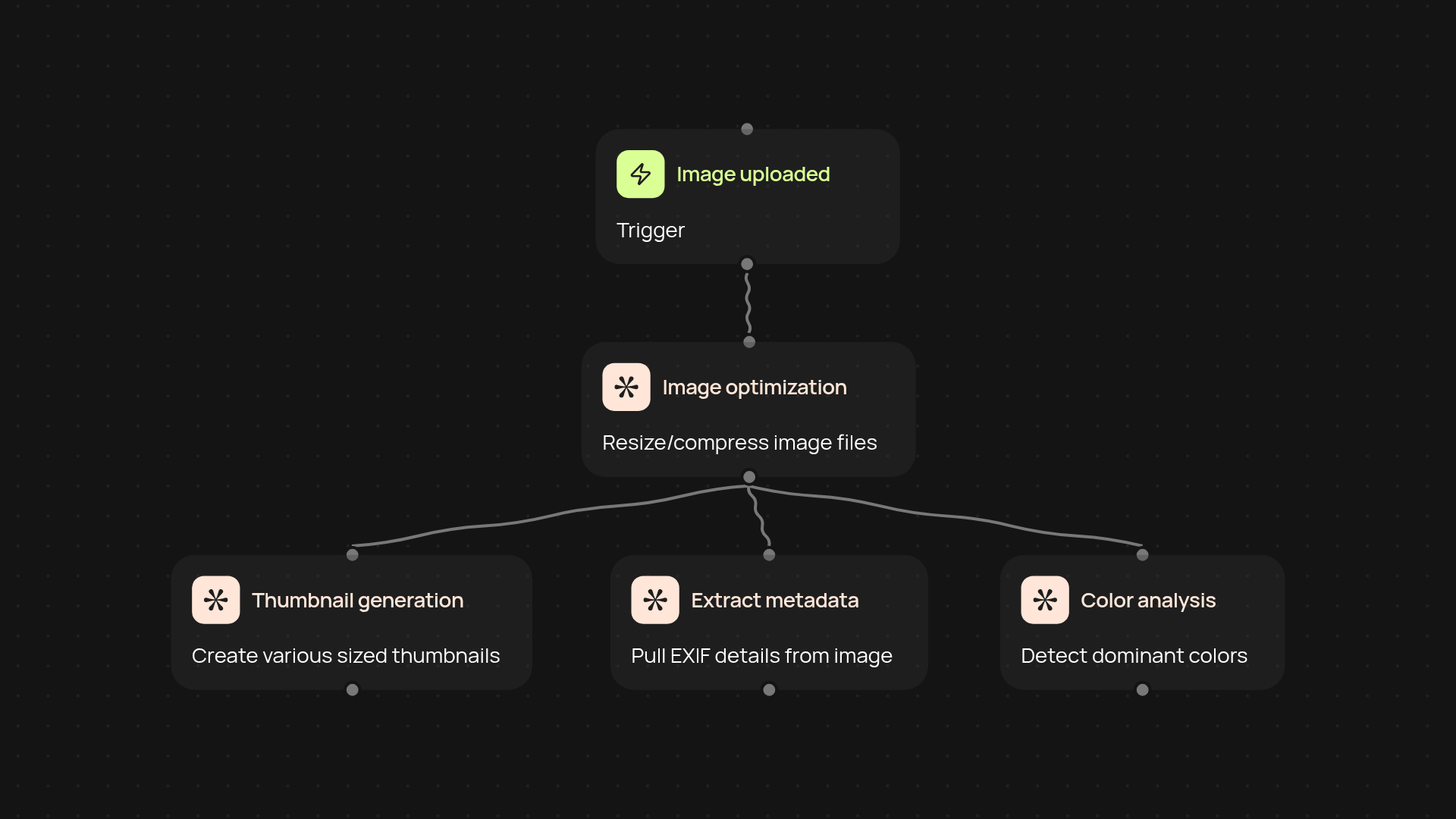 The DAM Image Processor streamlines your entire image workflow from start to finish. It handles repetitive tasks like generating custom-sized thumbnails, compressing and optimizing images, extracting EXIF metadata, and breaking down dominant colors in every file. These processes run in the background, letting you organize creative assets, keep your system up-to-date, and deliver images efficiently—entirely on autopilot.