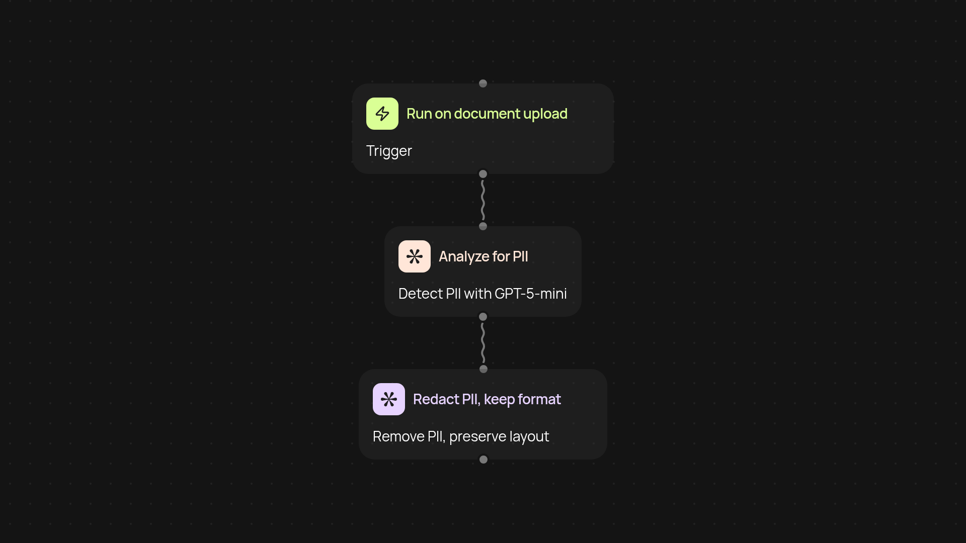 Begin by uploading any document you want to anonymize. With just one trigger, the Document Anonymizer takes care of the rest. No technical setup required—all you need is the file, and within moments you’ll have a PII-free version ready to go. It’s that easy to add hands-free privacy protection to your workflow.