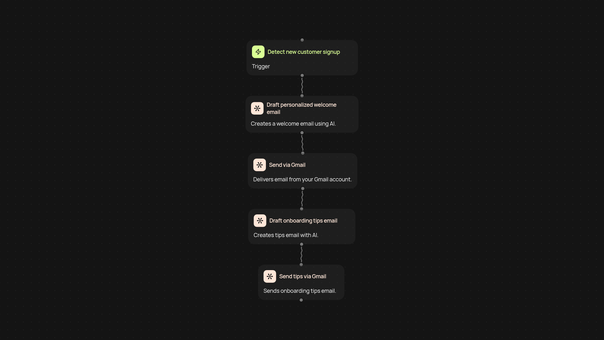 The sequence taps into AI to craft engaging, tailored email content for each customer based on their signup details. Emails are sent at set times—like a welcome immediately, tips a day later, and a check-in after a week. This approach keeps your onboarding relevant and spaced out, so customers aren’t overwhelmed and know exactly what to do next.