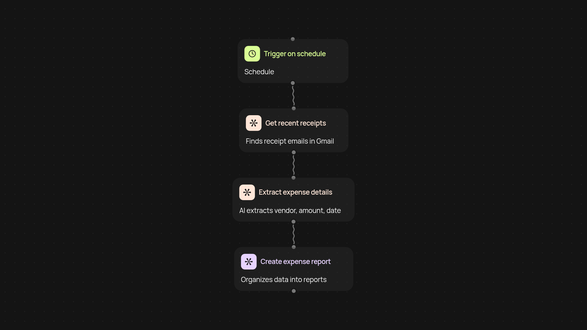 Yes, this template can run on a schedule, so new receipts added to your inbox are discovered and reported on autopilot. That means you get up-to-date reports as often as you need, with zero manual checks required.