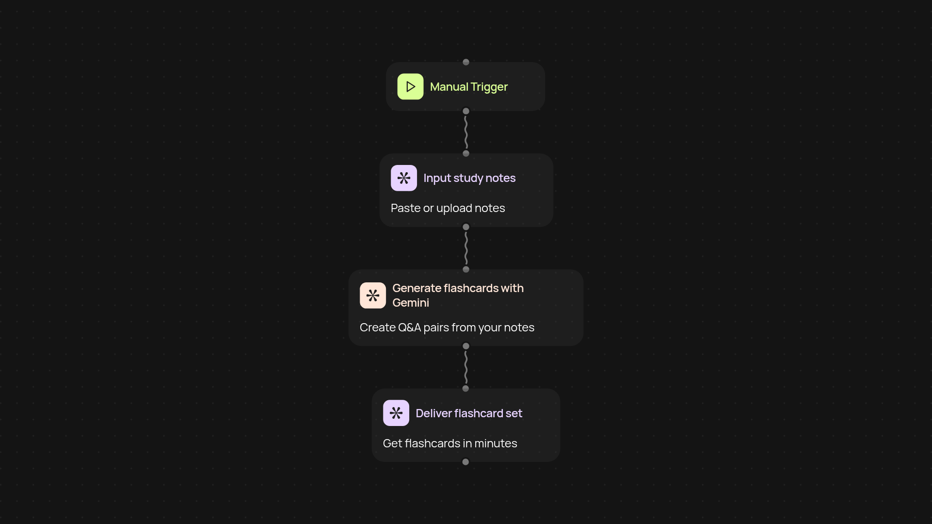All it takes is your study material and a CodeWords account. Start by selecting Gemini Flashcard Generator, add your notes, and let the AI handle the heavy lifting. Within moments, your personalized flashcards are ready for review.