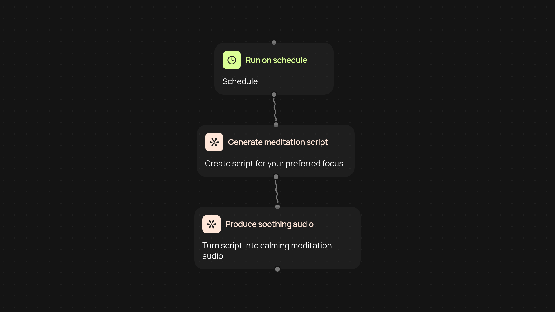 The guided meditation generator creates soothing, personalized meditation scripts with matching audio in just a few clicks. You simply describe your audience or focus—for example, stress relief or better sleep—and CodeWords takes care of the rest. Instantly, you’ll receive a calming meditation, tailored audio file, and ready-to-share script, all without manual writing or recording. It’s relaxation content on autopilot, created for you in seconds.