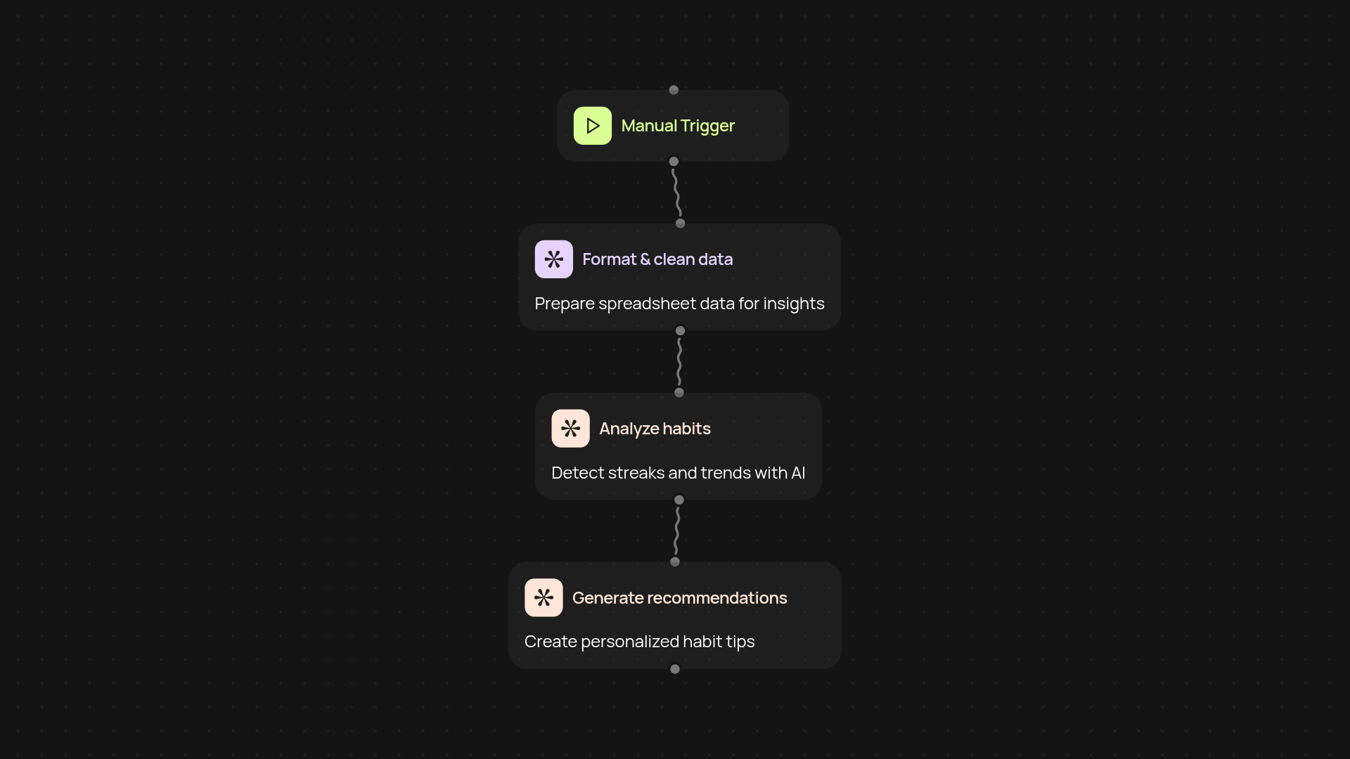 Just provide your habit tracking spreadsheet, and the Habit Tracker Analyzer takes care of the rest. It reviews every habit you've logged, recognizes your top streaks, and calls out areas for potential improvement. This all happens in the background, so you don't have to spend time analyzing numbers by hand.