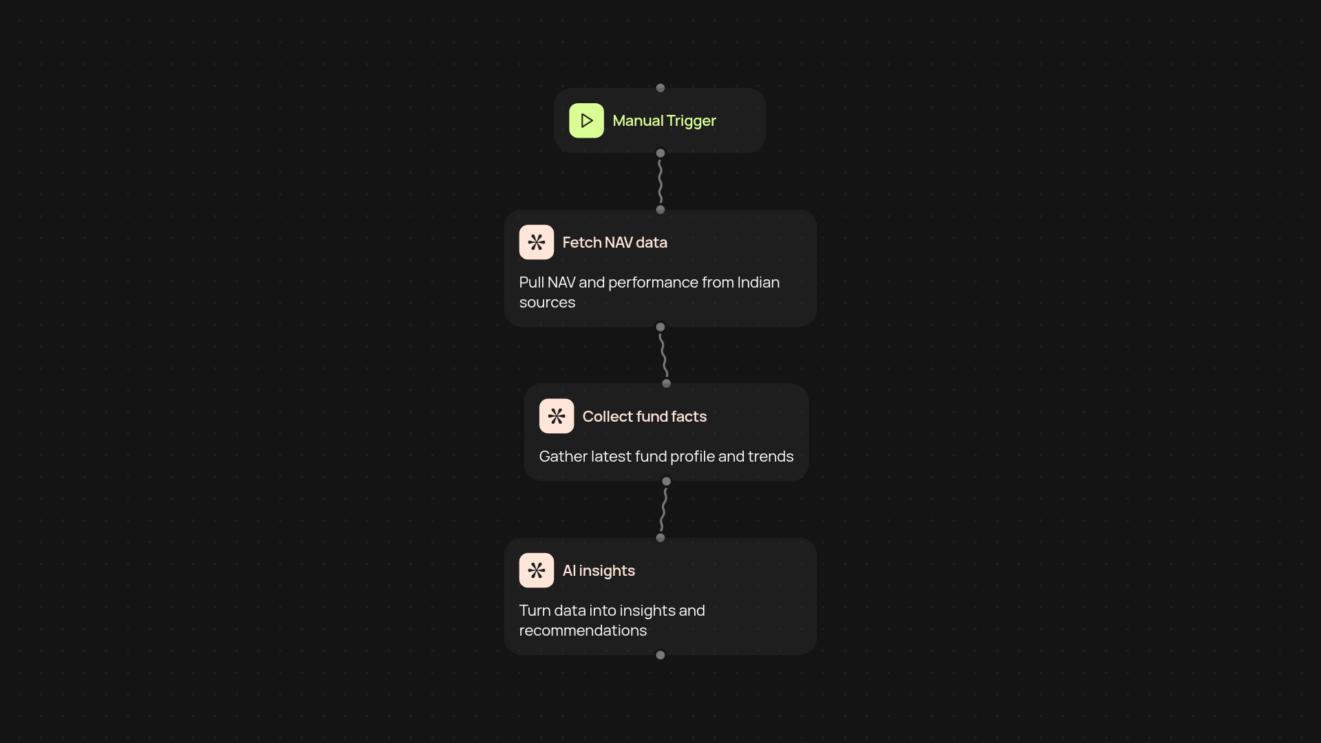The Indian Mutual Fund Analyzer brings you clear analysis for Indian mutual funds using the latest NAV data and Gemini AI insights. All you have to do is pick a fund. Instantly, you'll see performance breakdowns, historical NAV trends, and personalized AI commentary — all without lifting a finger. Whether you're new to investing or tracking your existing funds, you'll get data-backed information to help guide your next move.