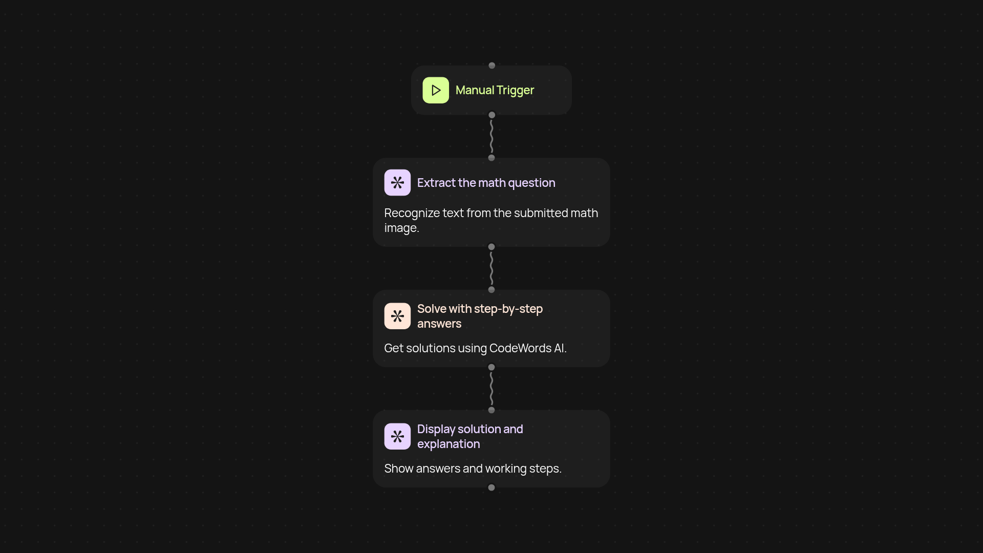 Get fast, accurate math solutions without the hassle. Math Problem Solver takes your math problem—whether typed out or captured as an image—and instantly delivers step-by-step explanations. No more waiting for tutors or wading through confusing websites. Just upload, submit, and let CodeWords do the hard part in the background so you can focus on learning, not searching for answers.