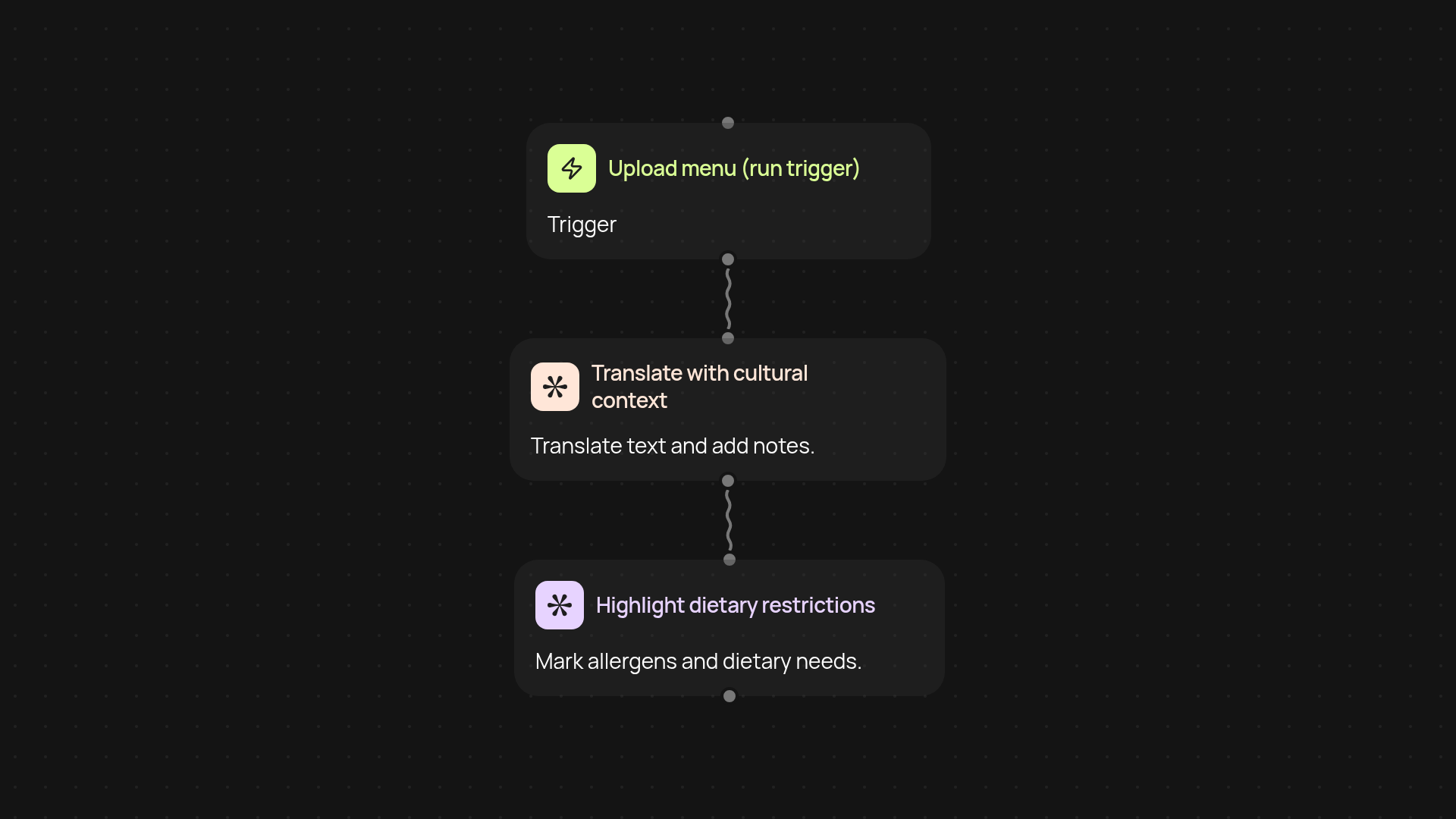 Getting started is easy. All you need is a digital version of the menu (text or file). Simply upload your menu file or paste text, choose your language, set dietary preferences, and you're ready. The process runs on autopilot—so you get clear, culturally-aware translations without lifting a finger. No extra training required.