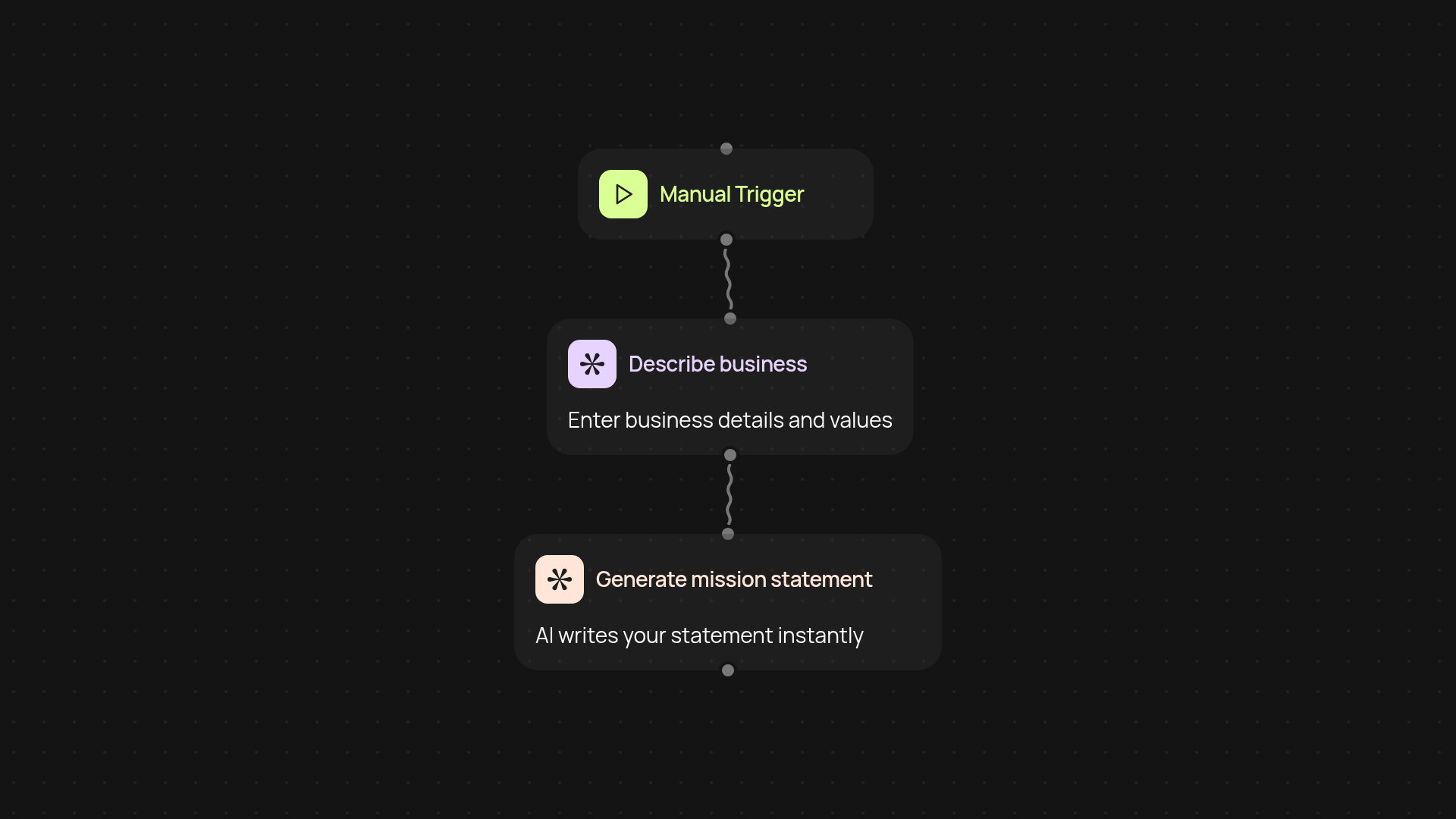 You only need a few key facts about your brand: the purpose, audience, and what makes it special. Enter these, click once, and let CodeWords do the rest in the background. No special setup is required, and your mission statement will be ready to share as soon as you need it.