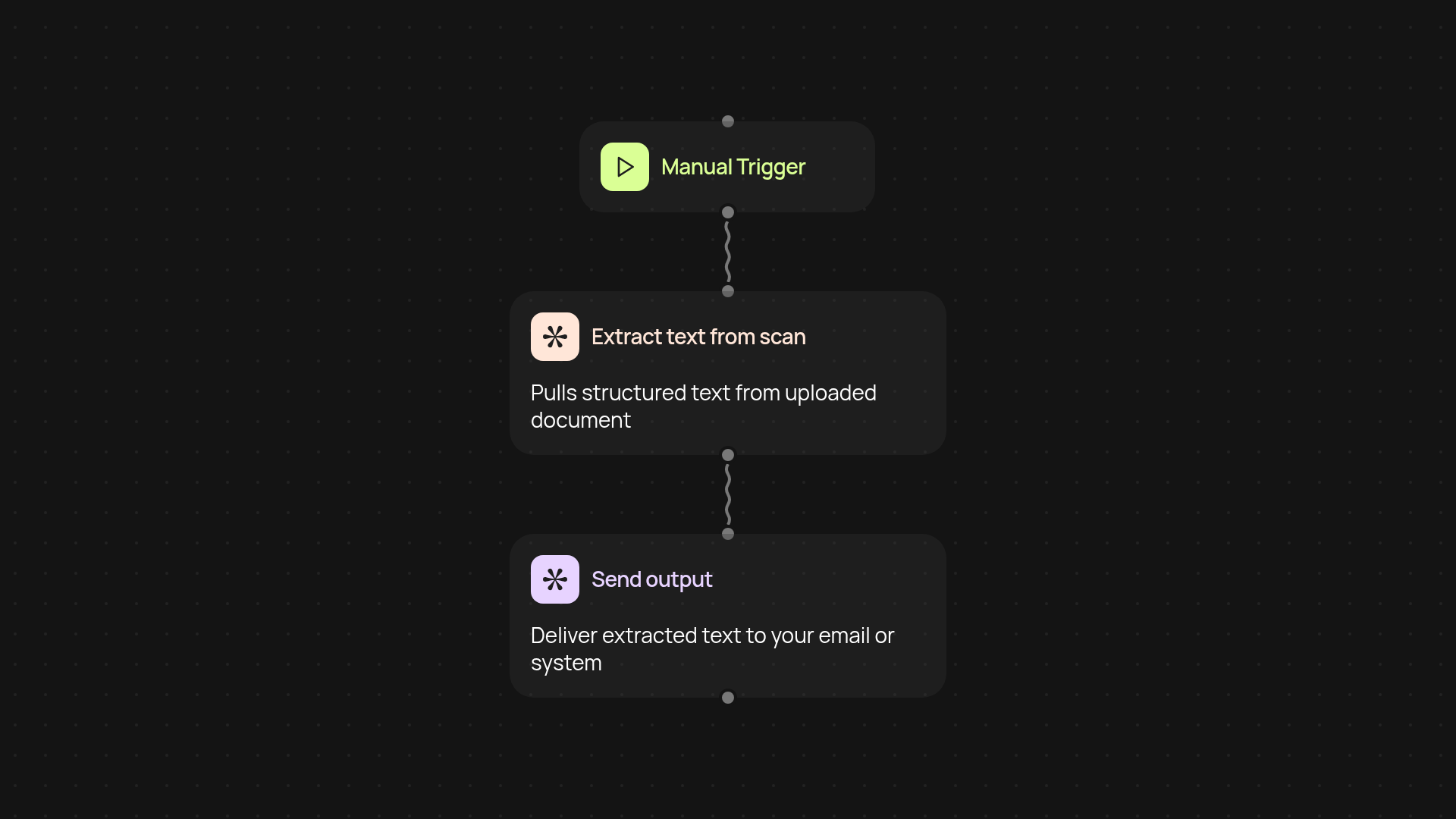 Whether it's PDFs, scanned receipts, handwritten notes, or images, this template gets the text out—without manual work. Processing happens in the background, freeing you up for more important tasks. Accuracy keeps your documents useful and ready to share or format further.