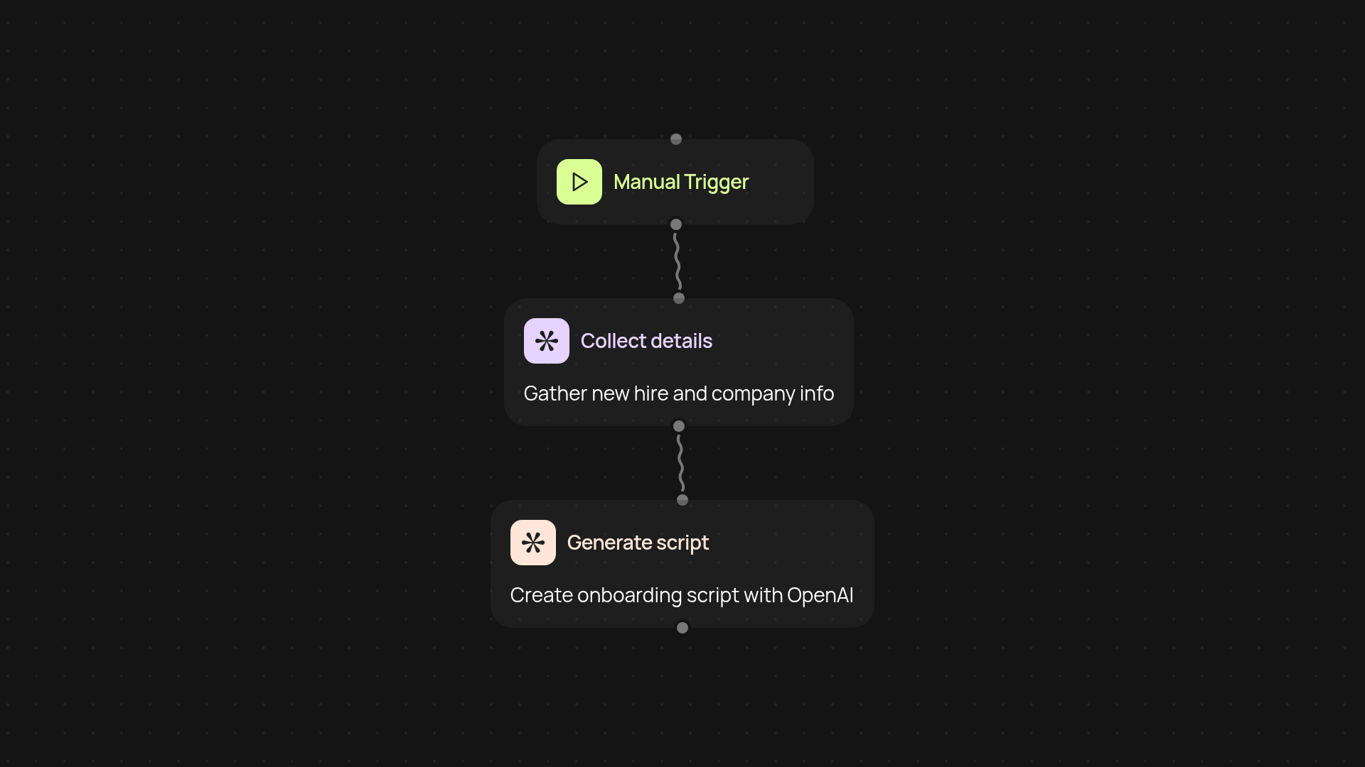 Starting is simple. You trigger the workflow and enter your onboarding details—like the new hire’s name, department, and any must-have points. The tool handles script creation in the background and outputs a ready-to-film onboarding script in minutes. All you need is your onboarding criteria and a few minutes to review the result.