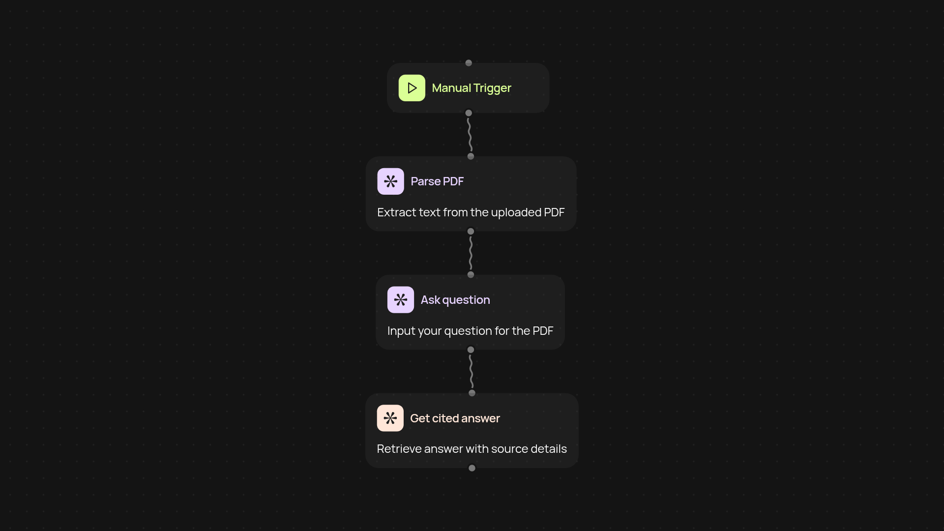 Answers are generated by analyzing your PDF and locating exact references for each reply. The assistant highlights where each fact came from, so you can trust the response and quickly verify accuracy. This means you always know which page to review if you want more detail.