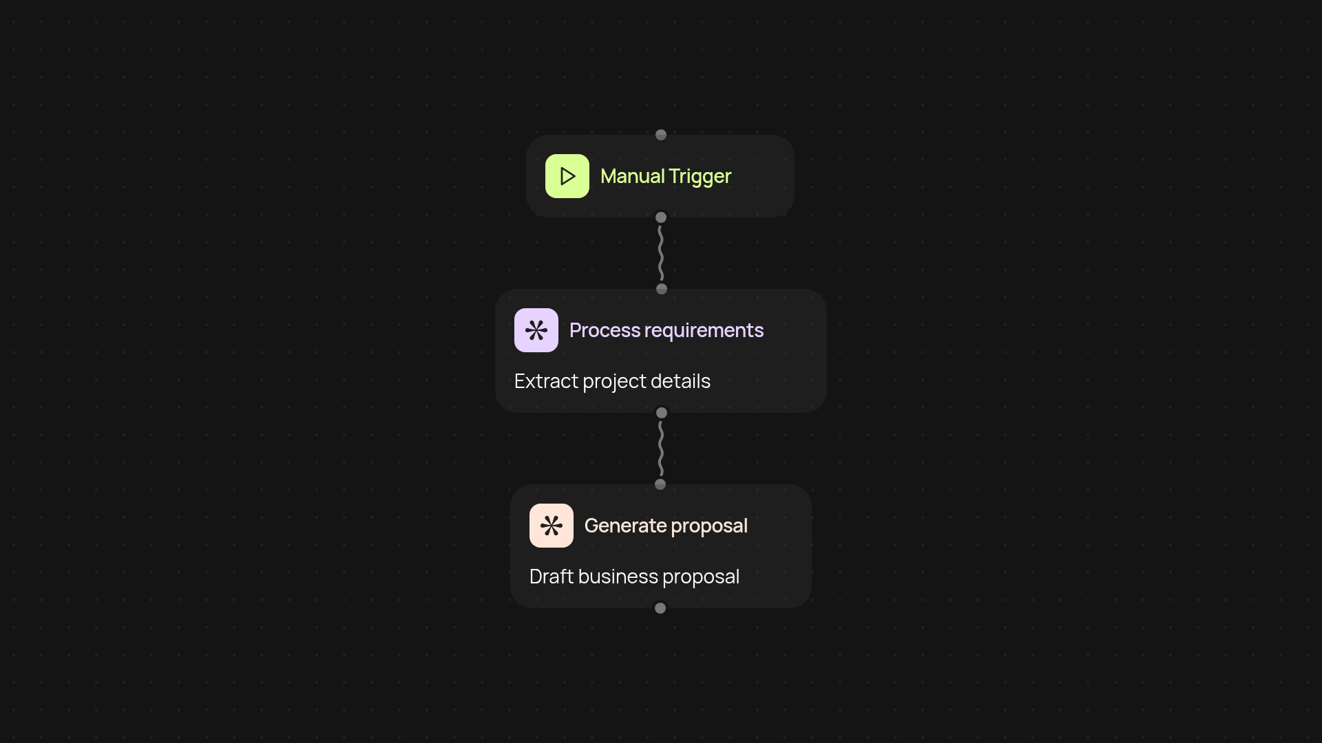It's simple. Just provide your project details, client needs, and any unique requests. The generator uses advanced AI to organize and format this information into a persuasive document. It fills in standard sections and adapts tone and language to fit your brand. You can review and fine-tune the final proposal — but the heavy lifting is done for you.