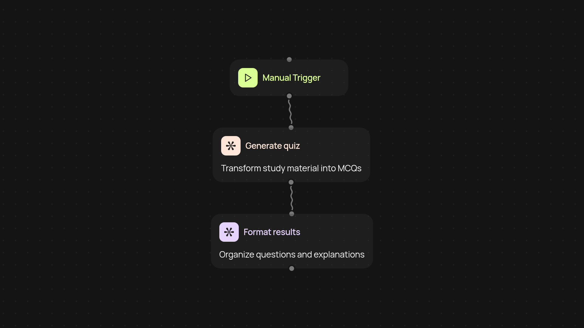 Getting started is simple: just provide your study material and pick your desired quiz settings. With a single click, the Quiz Generator gets to work in the background. You'll need your study material and internet access—no technical skills required.
