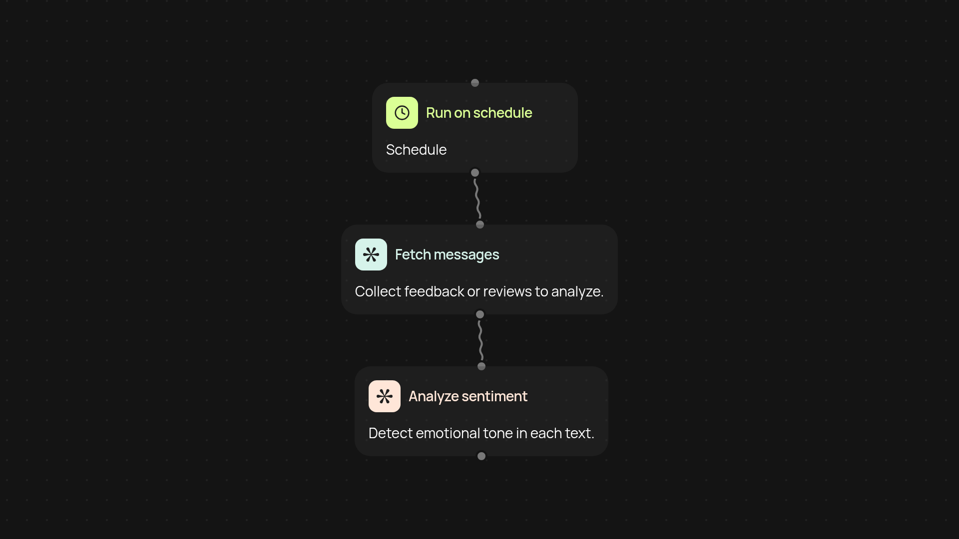 Getting started is straightforward. First, set a trigger: choose if you want the sentiment check on autopilot (on schedule or when new messages arrive) or run manually on demand. Next, connect the sources where your text feedback appears — email, chat, or uploads. Finally, review sentiment insights in your dashboard or send them to the right team. All you need is access to your messages and a few clicks in CodeWords to put sentiment analysis to work.