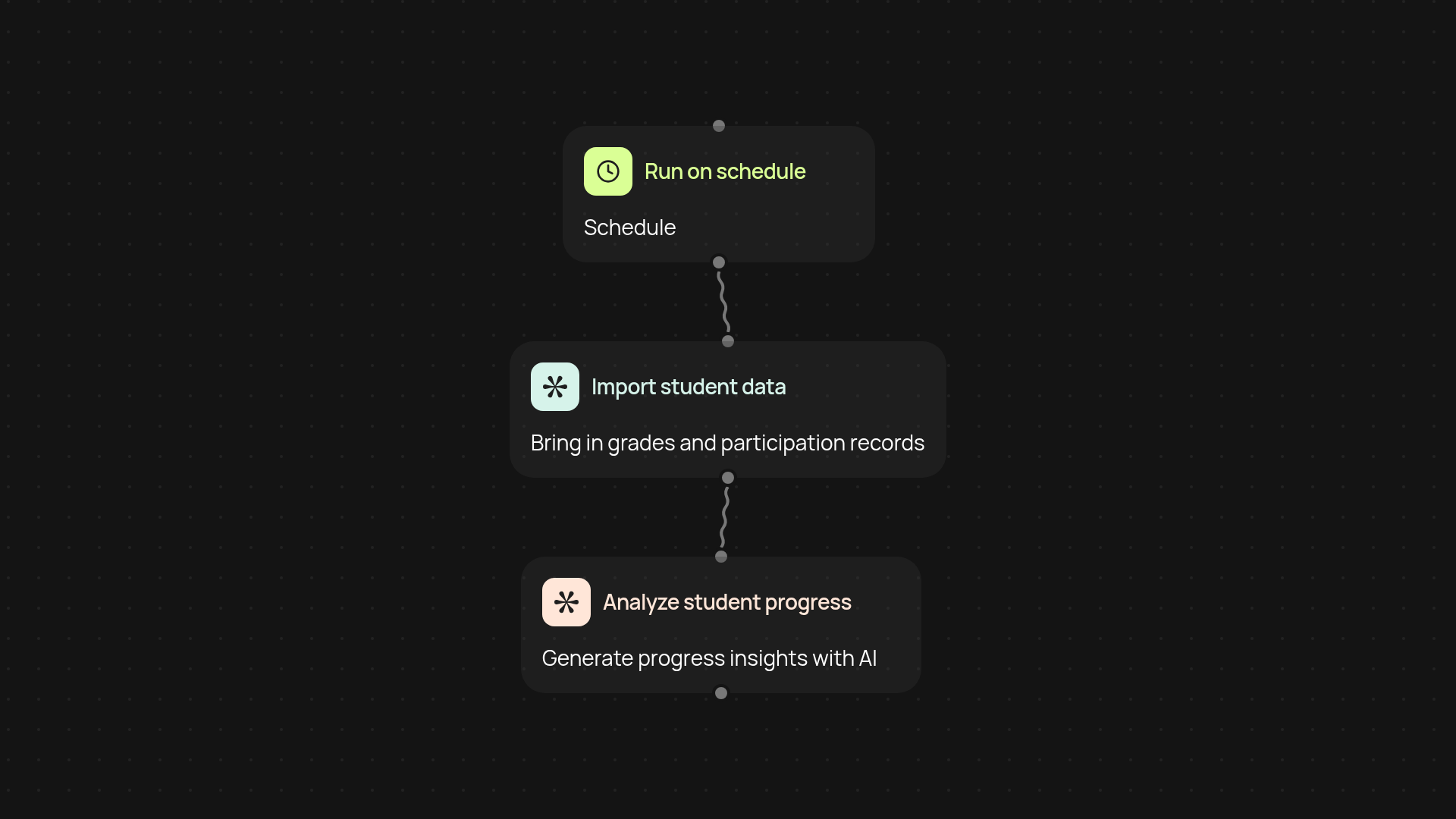Getting started is quick and simple. Choose when to run the tracker—either on a schedule or manually—then connect your learning data source. You’ll need access to student performance data (such as test results). The system processes and analyzes your information automatically, so you get actionable insights fast. That’s it—you’re ready to track learning progress hands-free!