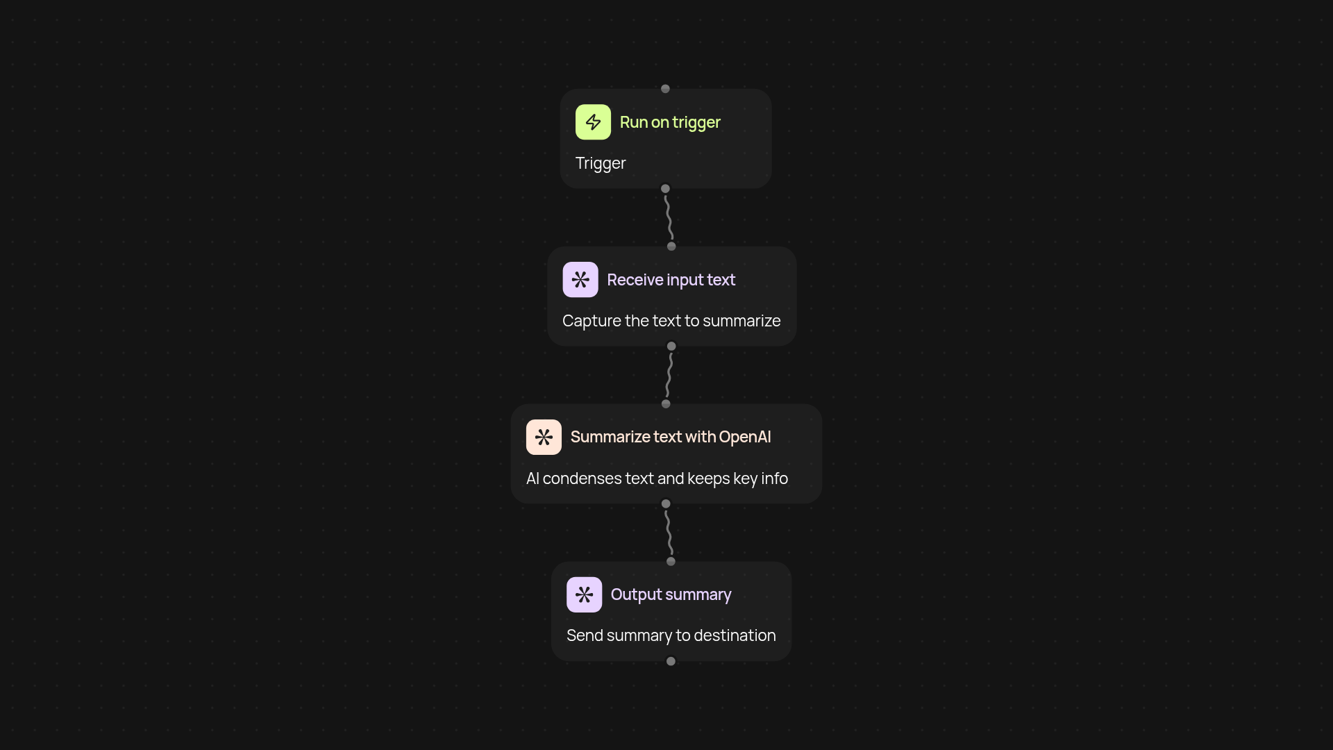 To get started, all you need to do is select your input text and trigger the summarization workflow. No advanced setup required—just paste your content and run the summary. For automation, connect the summarizer to your favorite tools, and have summaries delivered hands-free where and when you need them. You’ll be up and running in minutes.